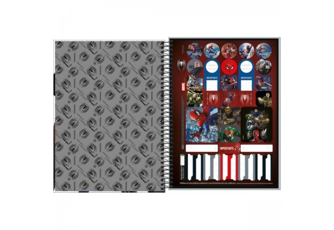 O Caderno Espiral Capa Dura Universitário 1 Matéria Spider-Man Game 80 Folhas possui capa dura com a parte interna decorada, bolsa plástica para guardar trabalhos e anotações, folha com adesivos funcionais, folhas pautadas e espiral colorido. Ideal para o dia a dia na escola ou na faculdade.