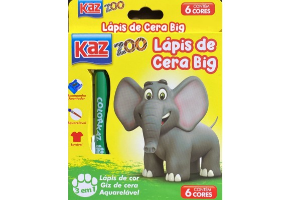 LAPIS DE CERA BIG 6 CORES AQUARELÁVEL KAZ C/ APONTADOR
