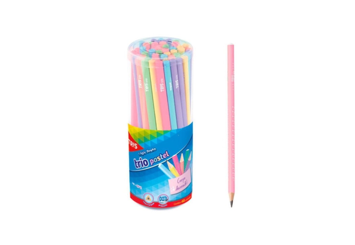 LAPIS PRETO TRIS TRIO PASTEL TRIANGULAR POTE COM 48 UNIDADES SORTIDAS