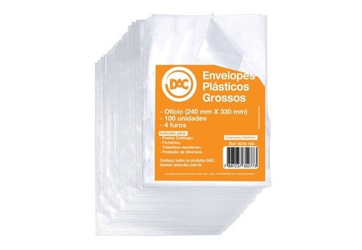 ENVELOPE PLASTICO DAC 4 FUROS OFICIO GROSSO PCT 50 UNI