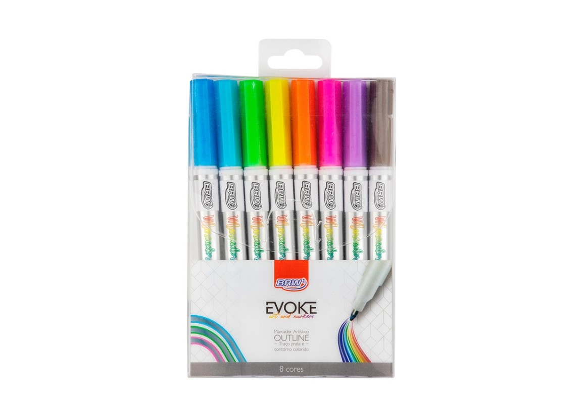MARCADOR ARTISICO EVOKE OUT LINE BRW BLISTER C/ 8 CORES