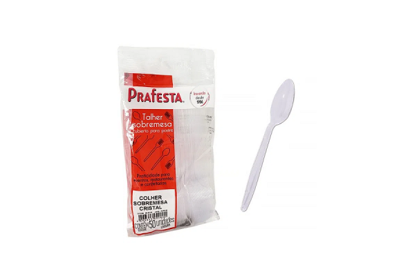 COLHER PLÁSTICA DESCARTÁVEL DE SOBREMESA CRISTAL PCT C/50