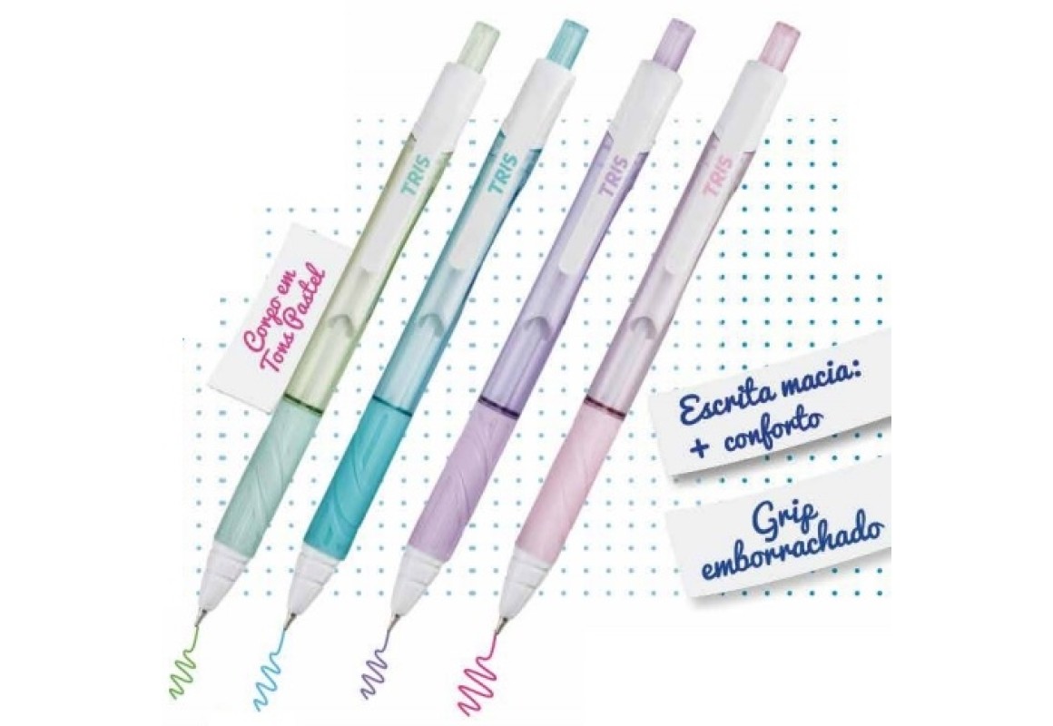 CANETA ESFEROGRAFICA TRIS LET'S FASHION RETRATIL, PONTA MÉDIA 1.0, CORES EM TONS PASTEL