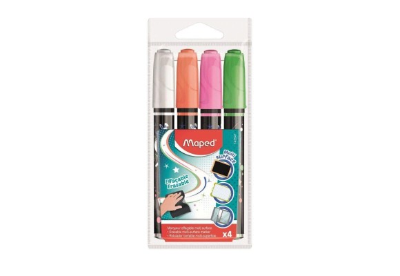 MARCADOR MAPED MULTI SUPERFICIE ESTOJO X 4 CORES BRANCO / LARANJA / ROSA / VERDE