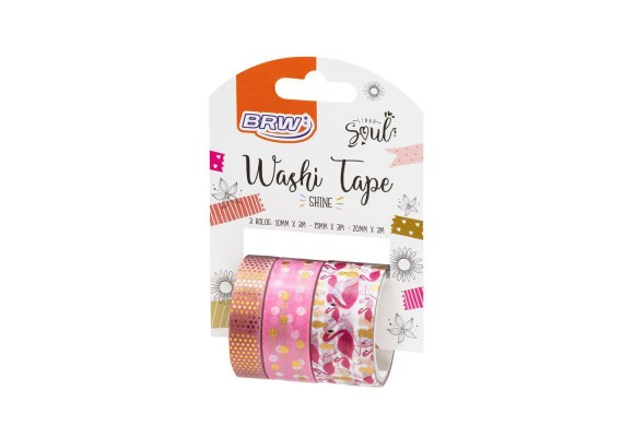 FITA ADESIVA WASHI TAPE BRW SHINE FLAMINGO - 10/15/20X3M - BLISTER C/ 3UN
