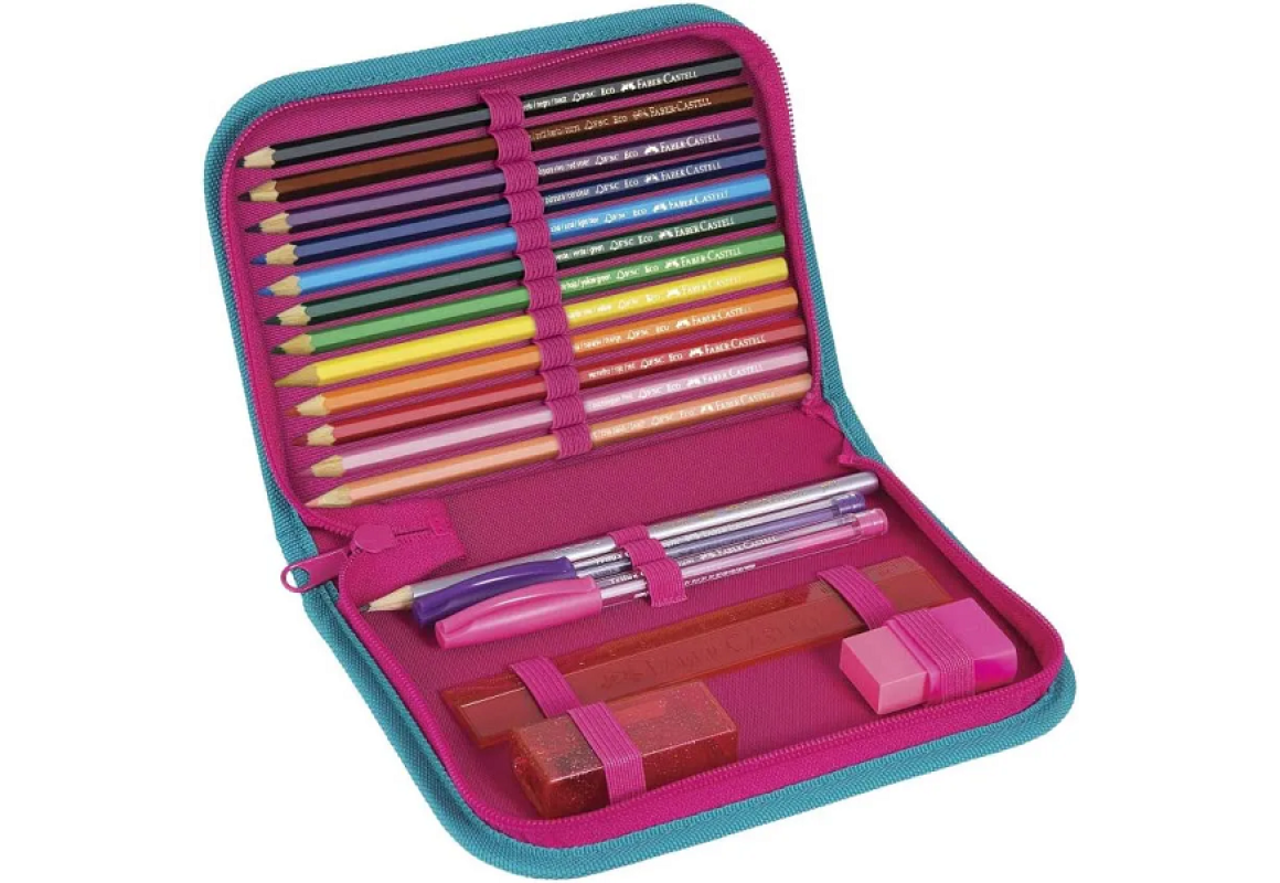 ESTOJO NYLON BORBOLETA ROSA FABER CASTELL